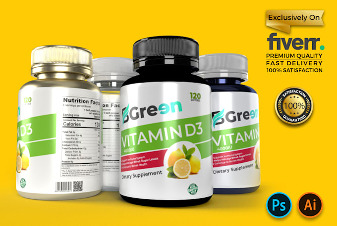 We will create unique, professional Design, Bottle Label, Supplement Label, Amazon Private Label, Product Packaging, Product Label